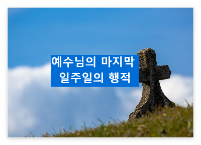 예수님의 마지막 일주일간을 정리한 것입니다. 사복음서에 나온 내용들을 최대한 순서대로 정리했지만 성경이 확실히 말하지 않기 때문에 오류가 있을 수 있습니다. 다른 주석들과 비교하여 분석한 것이니 반드시 성경을 통해서 확인해 보시기 바랍니다.