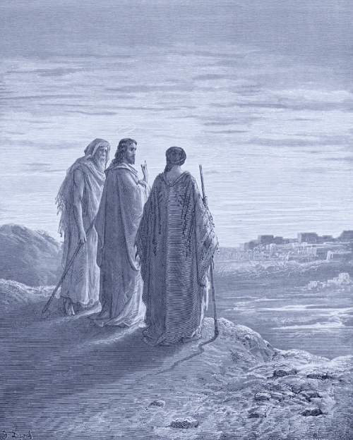 예수님은 엠마오로 가는 두 제자에게 동행하시며 성경의 예언이 자신에게서 성취된 것임을 설명하셨습니다. 그들은 예수님을 식사 자리에서 알아보았고, 곧바로 예루살렘으로 돌아가 제자들에게 전했습니다(누가복음 24:13-35). - 열 제자들에게 나타나심